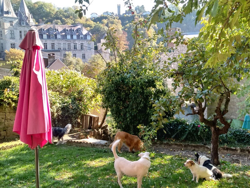 ONBEPERKT AANTAL HONDEN , OMHEINDE TUIN ca 50m2, 2m hoog door muur